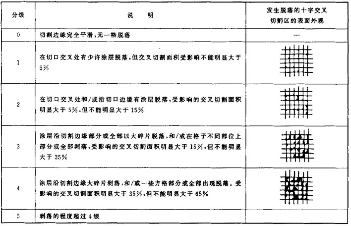 根据《PCBA绝缘喷涂附着力测试规程》进行测试,且与下表比对,附着力在合格范围内;
