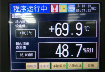 高温高湿储存:温度70℃,湿度95% 持续时间8小时,在试验箱温度恢复到室温后,拿出观察,表面与放入之前对比无氧化、无裂痕、破损现象。